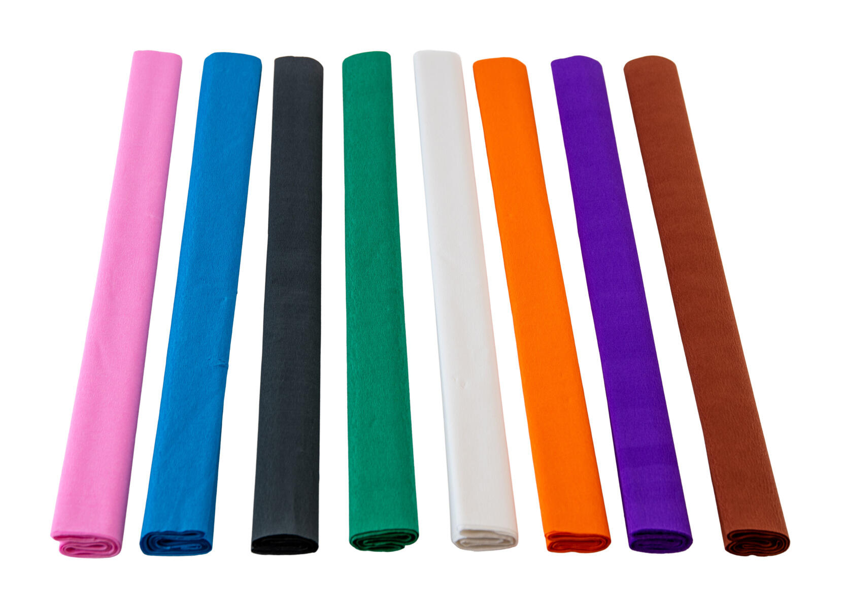 Storpack med kräppapper för hobbyarbeten. 50x250 cm/rulle. 10 rullar av vardera 15 färger/fp.