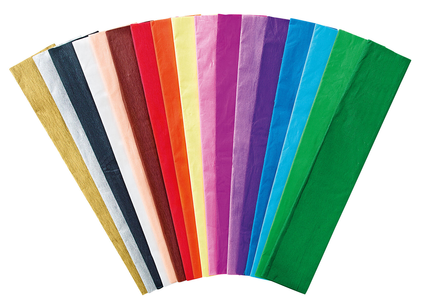 Storpack med kräppapper för hobbyarbeten. 50x250 cm/rulle. 10 rullar av vardera 15 färger/fp.