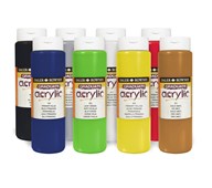 10x500 ml/fp. Vattenbaserad och ljushärdig akrylfärg med hög pigmenthalt. Innehåller färgerna Carmine red, magenta, white, primary yellow, black, vermillion, cyan, prussian blue, brilliant green, och dark green. Kan användas på de flesta underlag som pannå, målarduk, papper, trä och lera. Penslar och verktyg rengörs i vatten omedelbart innan färgen torkar. Ger en halvblank och vattenfast yta. Torktid ca 15 min.