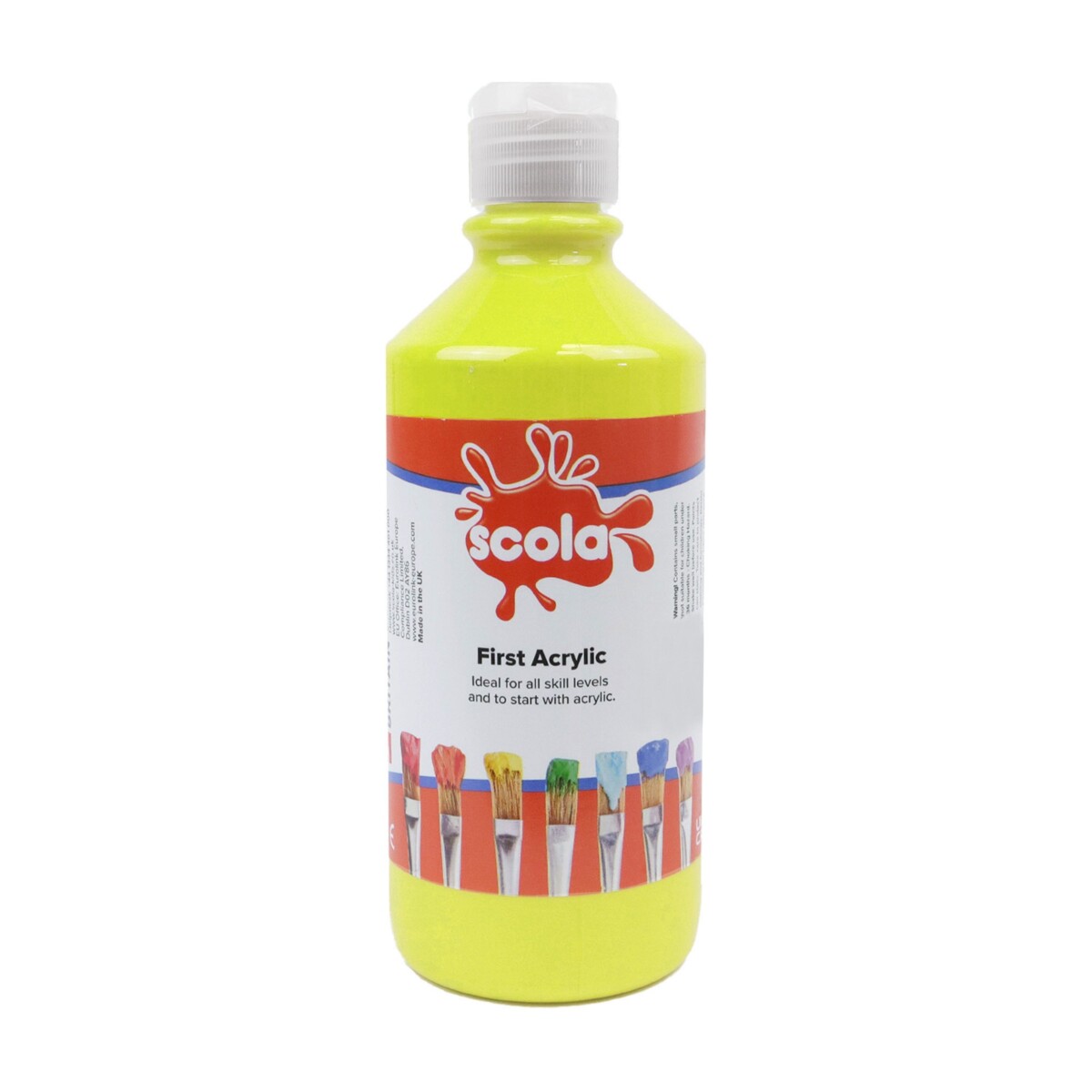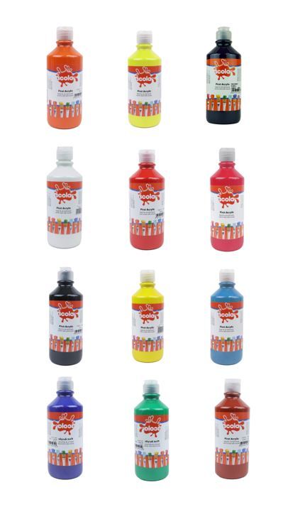 5x500 ml. Vattenbaserad och ljushärdig akrylfärg med hög pigmenthalt. Kan användas på de flesta underlag som pannå, målarduk, papper, trä och lera. Penslar och verktyg rengörs i vatten omedelbart innan färgen torkar. Ger en halvblank och vattenfast yta. Torktid ca 15 min. Färgen kan smeta av sig innan den är helt torr, skydda alltid kläder och ömtåliga ytor. Komplett uppsättning för färglära av vår akrylfärg innehåller 1 flaska av varje primary yellow, magenta, cyan, black och white.
