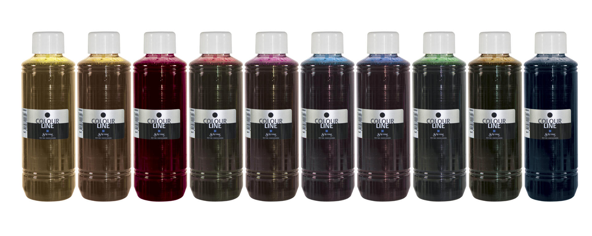 10x250 ml/fp. Innehåller färgerna blå, brun, citrongul, cyklamen, grön, gulorange, karmin, marinblå, röd och svart. En vattenbaserad transparent och mycket pigmentrik färg. Den flytande konsistensen gör dessa intensiva akvarellfärgerna lätta att arbeta med på alla underlag. Färgerna är inbördes blandbara. Penslar och andra verktyg rengöres omgående i vatten. Använd alltid förkläde vid målning.