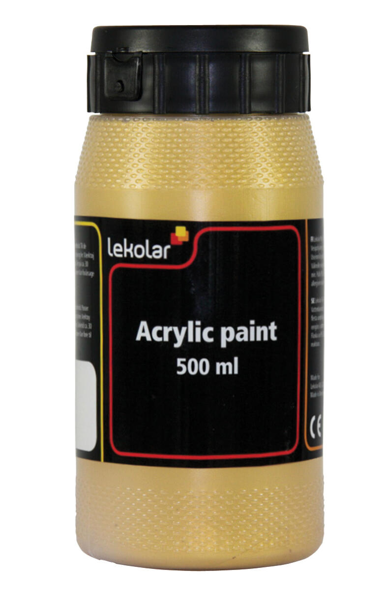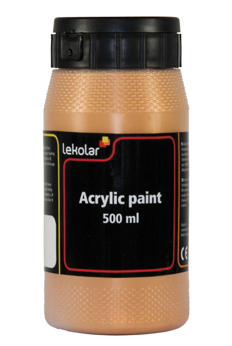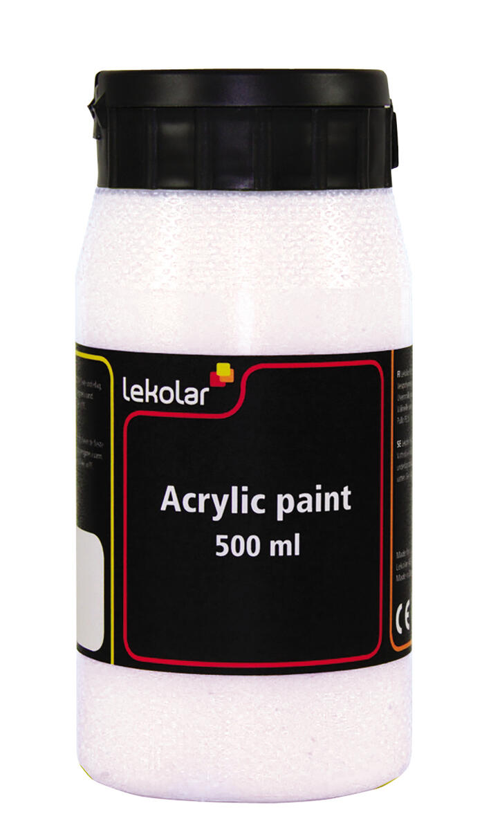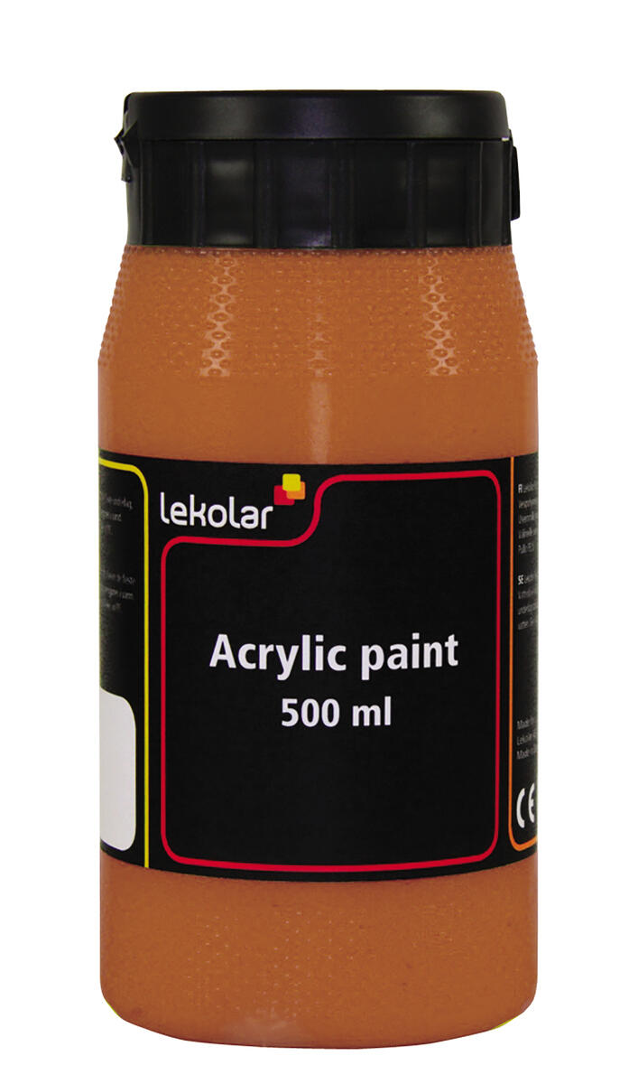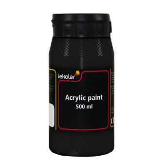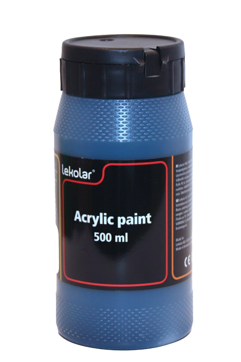500 ml/fp. Vattenbaserad akrylfärg i hög kvalitet som kan användas på de flesta underlag, t.ex. papper, målarduk, pannåer, trä och lera. Torkar till en slät sidenmatt yta. Penslar och verktyg rengöres omedelbart i vatten före torkning. Vattenfast efter torkning.