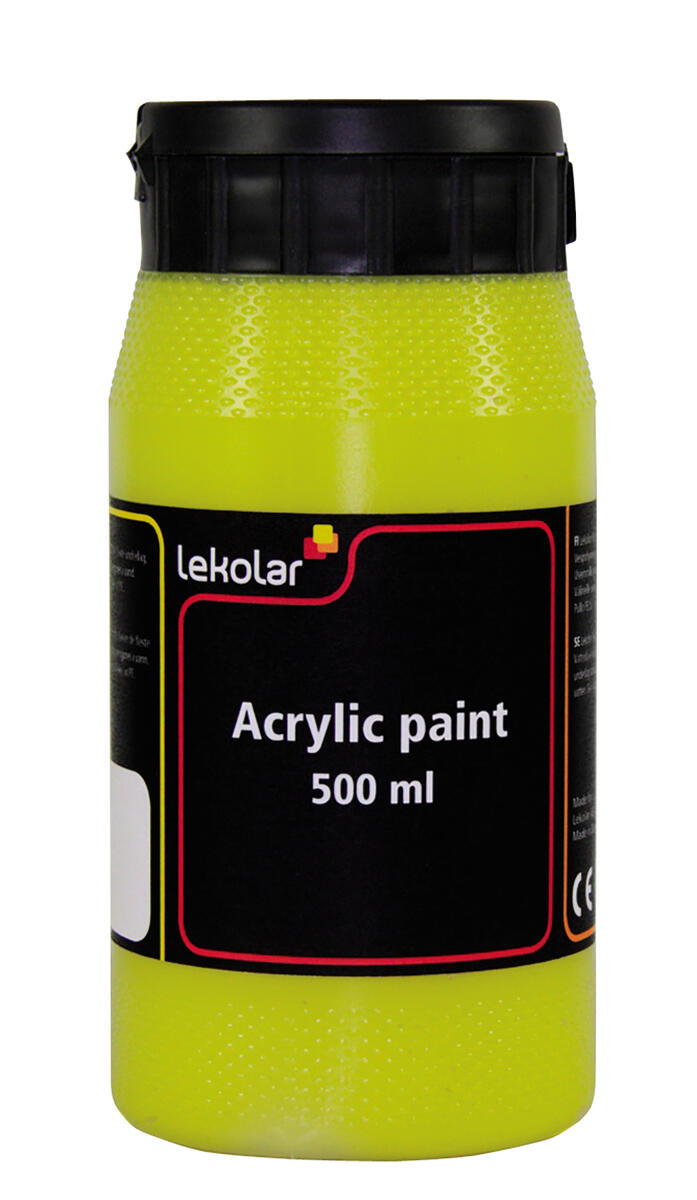 500 ml. Vattenbaserad och ljushärdig akrylfärg med hög pigmenthalt. Kan användas på de flesta underlag som pannå, målarduk, papper, trä och lera. Tjock och krämig konsistens. Penslar och verktyg rengörs i vatten omedelbart innan färgen torkar. Ger en halvblank och vattenfast yta. Torktid ca 15 min. Färgen kan smeta av sig innan den är helt torr, skydda alltid kläder och ömtåliga ytor. 500 ml. Kadmiumfria.