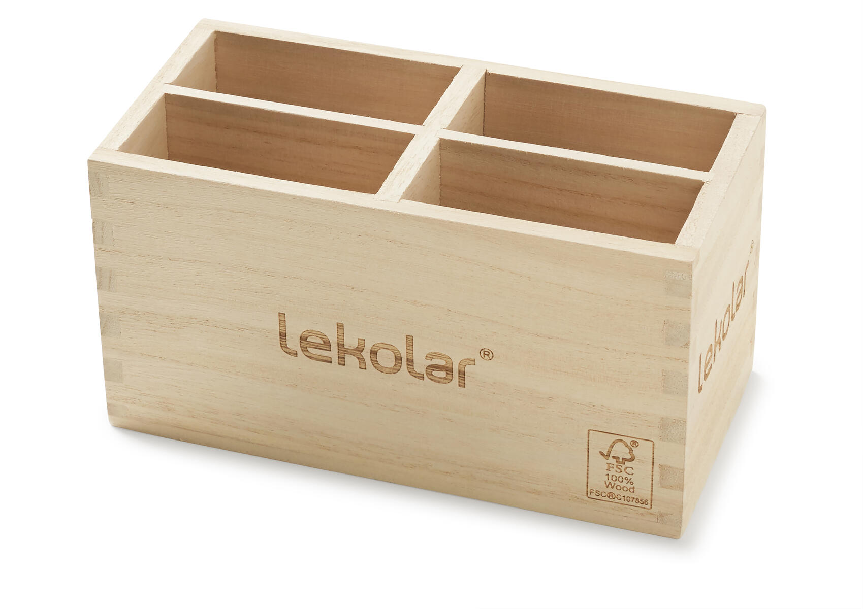 Passar stående förvaring av 96–144 pennor beroende på diameter. Fungerar även som mobillåda i skolan. Avdelarna mellan facken kan tas bort. Mått: B220xD230xH80 mm. Mått på facken: L50xB60xH80 mm. Pennor ingår ej. FSC-certifierat trä.