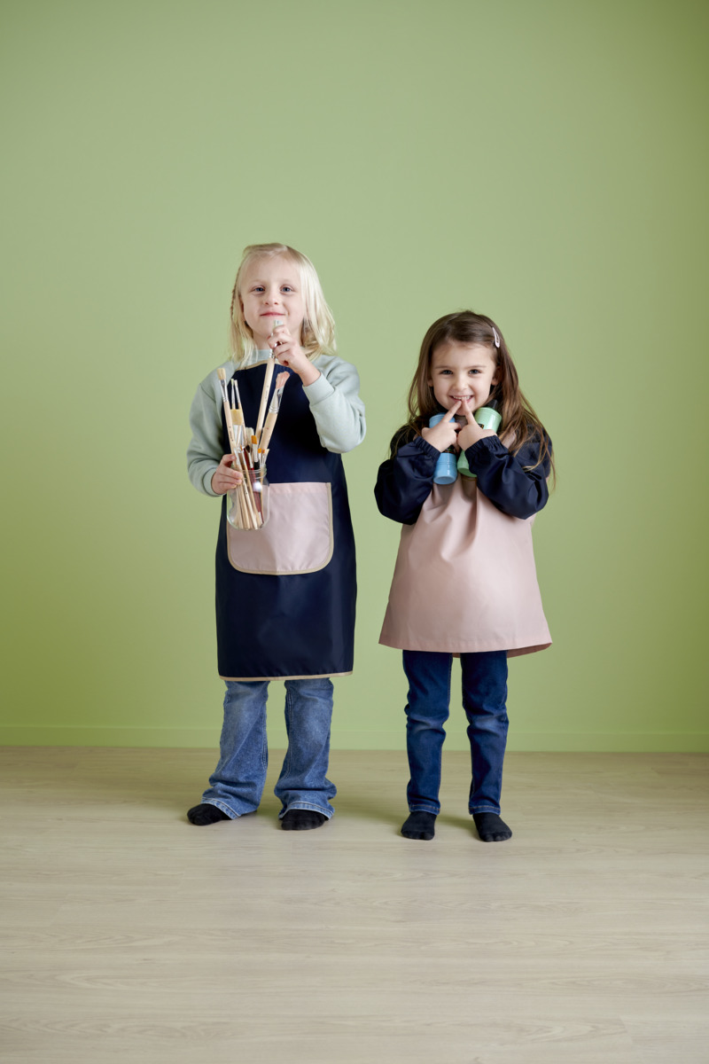 Målarförkläde med ärmar för de små barnen. Längd: 70 cm. Använd ej sköljmedel vid tvätt. Av polyamid med PU-beläggning på baksidan för att göra tyget vattentåligt. OEKO-TEX®-certifierad, (Standard 100). PVC-fri.