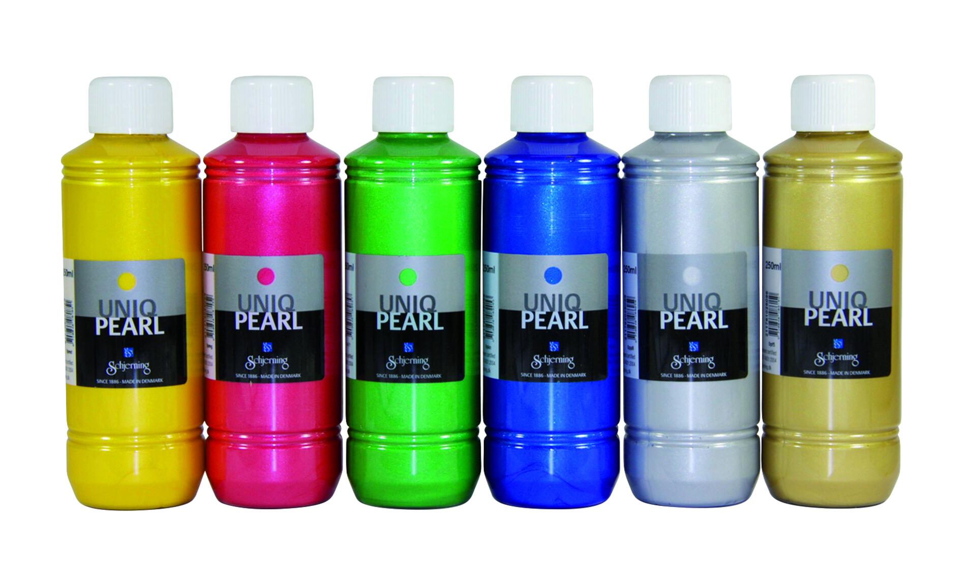 6x250 ml/fp. Vattenbaserad och transparent färg med hög pigmenthalt som torkar med fin pärlemorlyster. Färgen kan användas för t.ex. tryck-, svamp-, skrap- och lasyrtekniker. Färgerna motsätter sig omedelbar blandning vilket ger intensiva och levande färgmönster. Den kan användas på alla ljusa underlag såsom papper, gips, trä, plast, glas m.m. Kan även målas på fönster och sedan lätt torkas av. Torkar halvblankt och är inte vattenfast. Förpackningen innehåller: gul, röd, blå, grön, vit och guld. Komplettera med vår praktiska pump 41007. Svanen, licensnummer 50570007. PVC-fri.