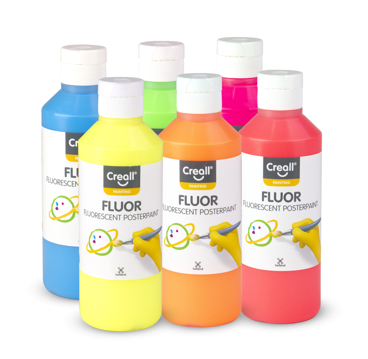 250 ml. Vattenbaserad fluorescerande täckfärg som torkar matt. Extra mycket färgpigment som ger starka och fina färger. Kan användas på de flesta underlag. PVC-fri.