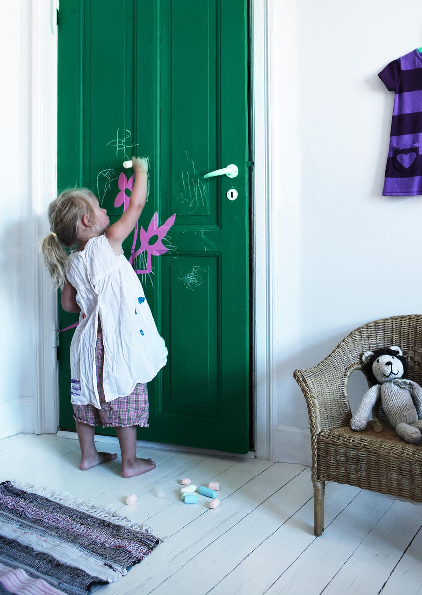 250 ml/fp. Helmatt tavelfärg med mycket tålig yta. Måla t.ex. ett fält på väggen och använd det som griffeltavla. Färgen är vattenbaserad men torkar vattenfast. Slipa underlagsytan innan målning. Måla minst två lager med pensel eller roller och låt härda i två dagar. Färgen lämnar inga penseldrag vilket gör den lämplig för målning av stora ytor såsom dörrar, luckor, skåp eller andra högabsorberande material. Använd tavelkrita för att skriva på ytan.