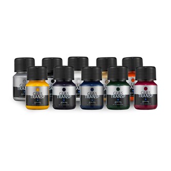 30 ml. Transparent färg för glas och porslin. Använd ej på material som ska komma i kontakt med livsmedel. Härdas i 160 grader ugn i ca 30-45 minuter. Tål sedan mild handdisk. PVC-fri.