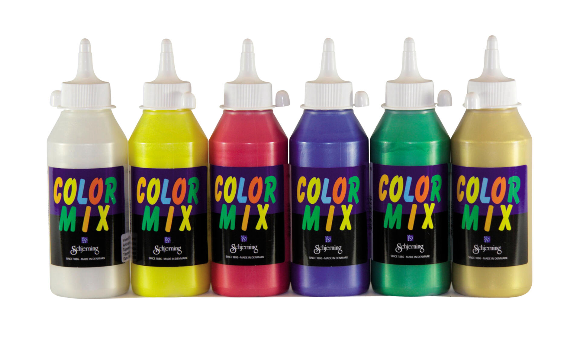 6x500 ml/fp. Färgen kan användas för t.ex. tryck-, svamp-, skrap- och lasyrtekniker. Färgerna motsätter sig omedelbar blandning vilket ger intensiva och levande färgmönster. Den kan användas på alla ljusa underlag såsom papper, gips, trä, plast, glas m.m. Kan även målas på fönster och sedan lätt torkas av. Torkar halvblankt och är inte vattenfast. Vattenbaserad och transparent färg med hög pigmenthalt. Förpackningen innehåller gul, röd, blå, grön, svart och vit. Svanen, licensnummer 50570007. PVC-fri.