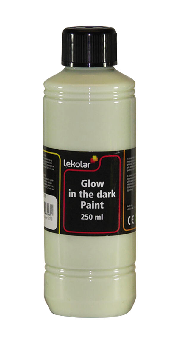250 ml. En färg som absorberar ljus och blir självlysande i mörkret. Efter ett tag minskar lyskraften. När det målade exponeras med ljus igen blir den åter lika självlysande. Torktid ca 60 min. Innan färgen torkar är den vattenlöslig. Färgen fungerar även på textil. Efter torkning tål färgen vattentvätt 40 °C. Komplettera med vår praktiska pump 41007.