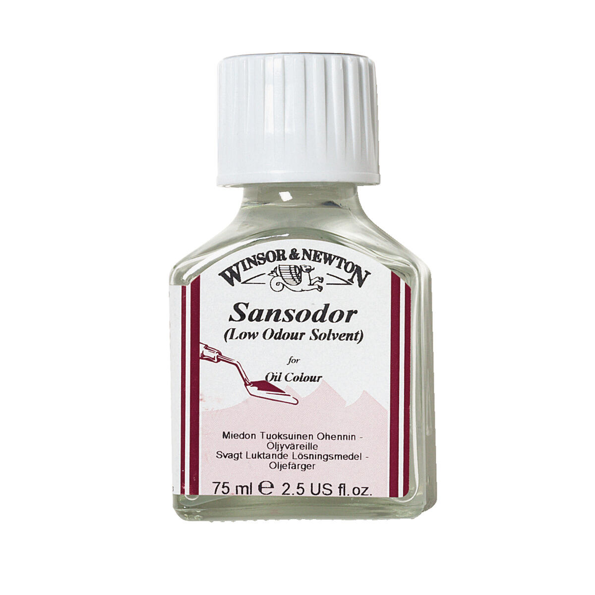 4 st/fp. Sansodor 75 ml. En svagt doftande spädningsvätska (förtunning) som alternativ till lacknafta. Avdunstar långsamt och är därför användbar för att justera och kontrollera oljefärgers konsistens. Har en låg flampunkt.