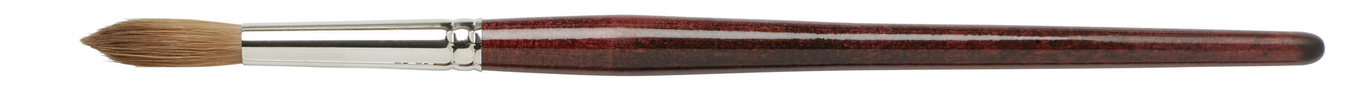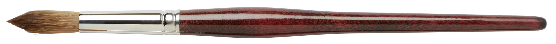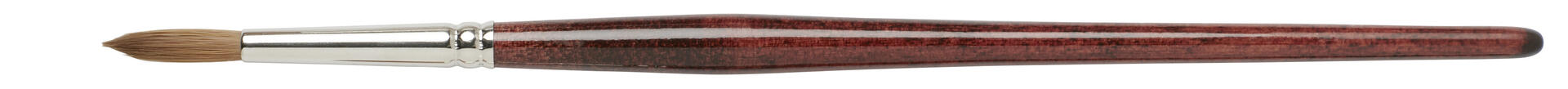 6 st/fp. Rund borst av syntetiskt Kolinsky-hår i hög kvalitet. Formfast och vätskehållande: perfekt för akvarellmålning och tunnare färger inklusive sidenmålning. Lackerat skaft av FSC-certifierat trä och aluminiumskoning.