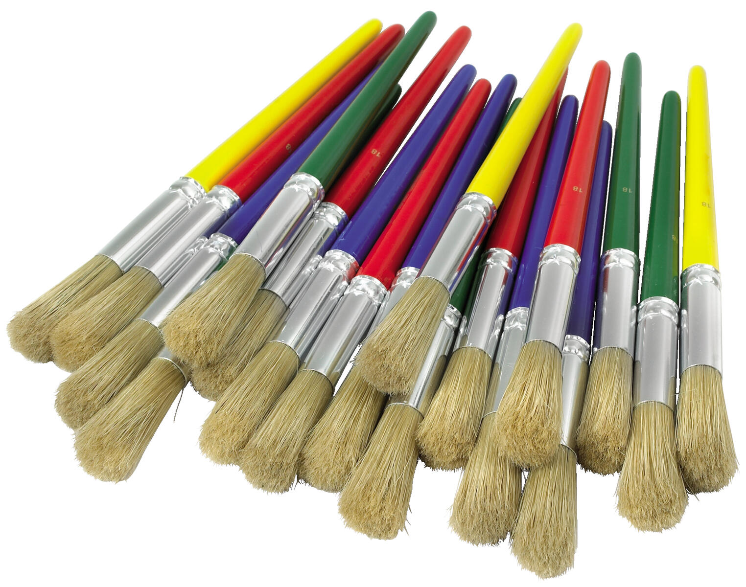 24 st/fp. Grova penslar med tjock borst. Lackerade tjocka träskaft i klara färger. Mycket lämplig som pensel för de lite yngre barnen. Längd 19 cm och 1,5 cm bred borst. PVC-fri.