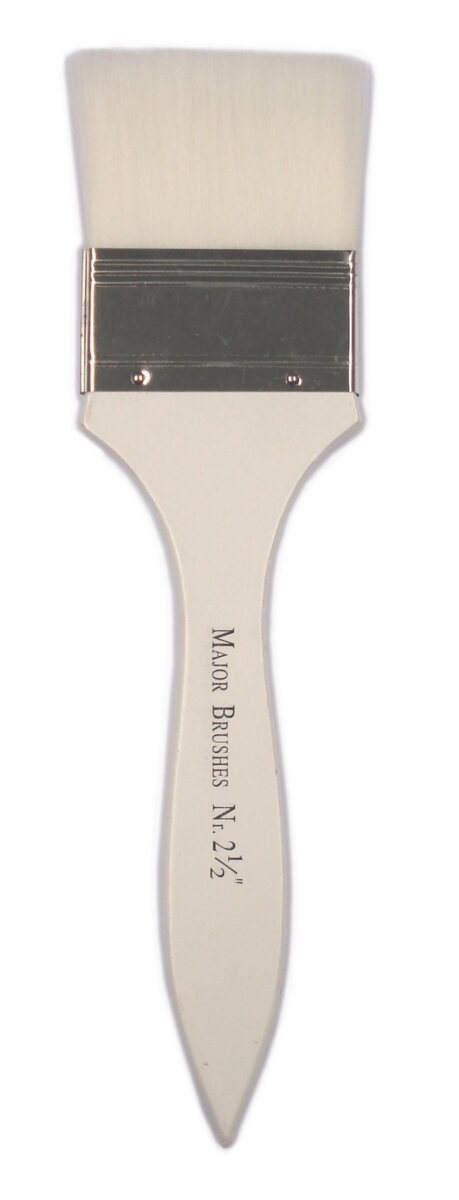 Pensel med syntetisk borst av god kvalitet. Mjuk, flat borst som ger en slät yta. Idealisk för målning och grundning av målningsarbeten. Skaft av vitmålad björk. Borst av nylon. Längd 220 mm, bredd 63 mm. PVC-fri.