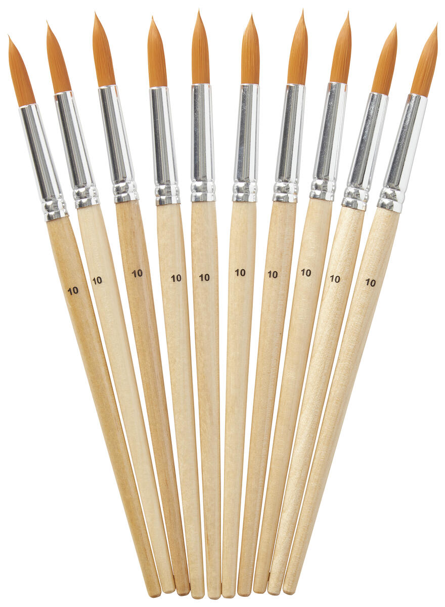 25 st/fp. Penslar av hög kvalitet. Med rund, slitstark och spänstig syntetborst. Lackerade träskaft. Passar till de flesta färger. Mycket slitstarka och spänstiga penslar i hög kvalitet. Även bra till decoupage, textilfärger och sidenfärger. Ingår: 8 st nr 2, 5 st nr 4, 6, 8 och 2 st nr 10. PVC-fri.