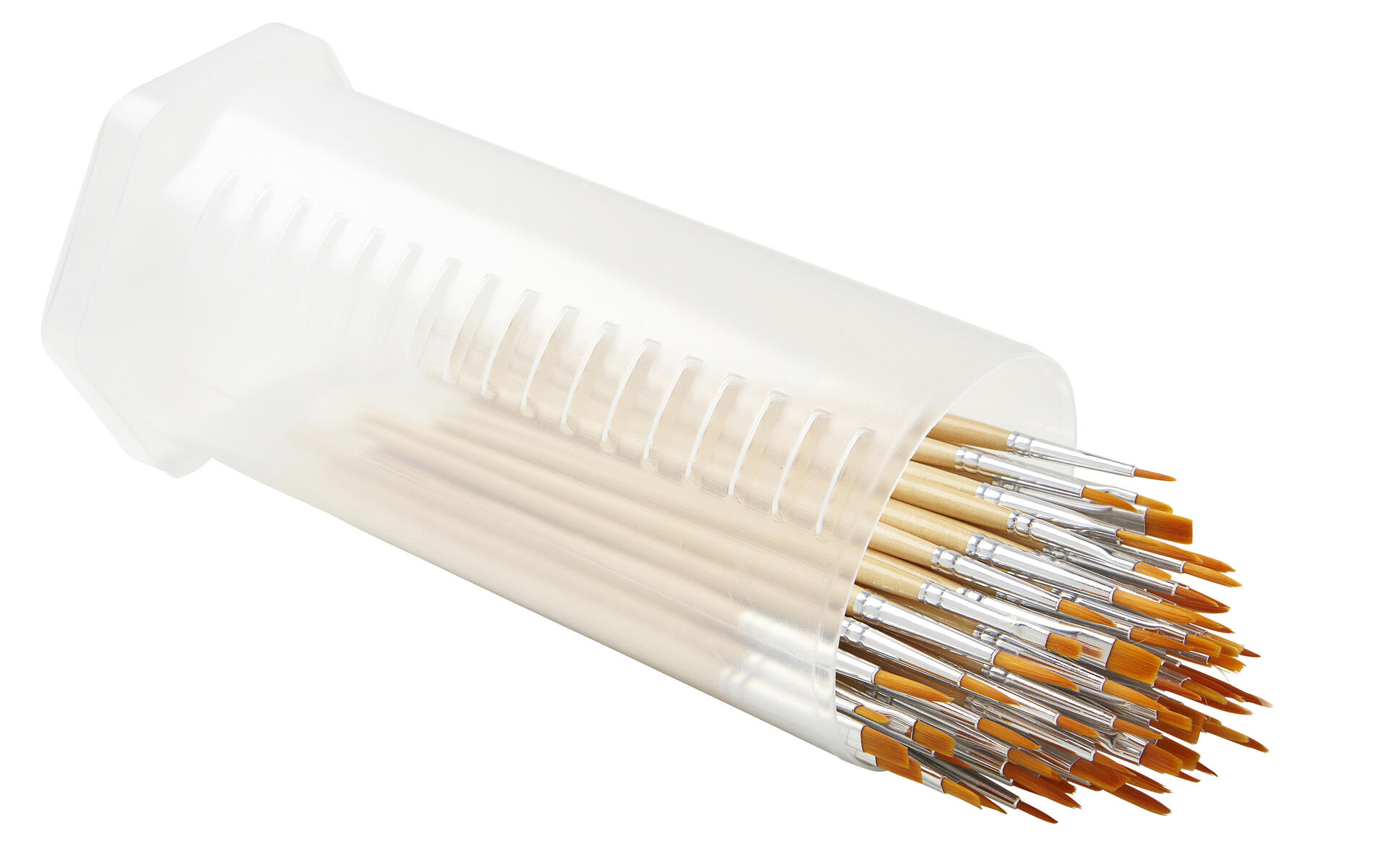 50 st/fp. Innehåller: 25 st flata penslar, 10 st nr 6, 10 st nr 10 och 5 st nr 14. 25 st runda penslar, 8 st nr 2, 5 st nr 4, 6, 8 och 2 st nr 10. PVC-fri.