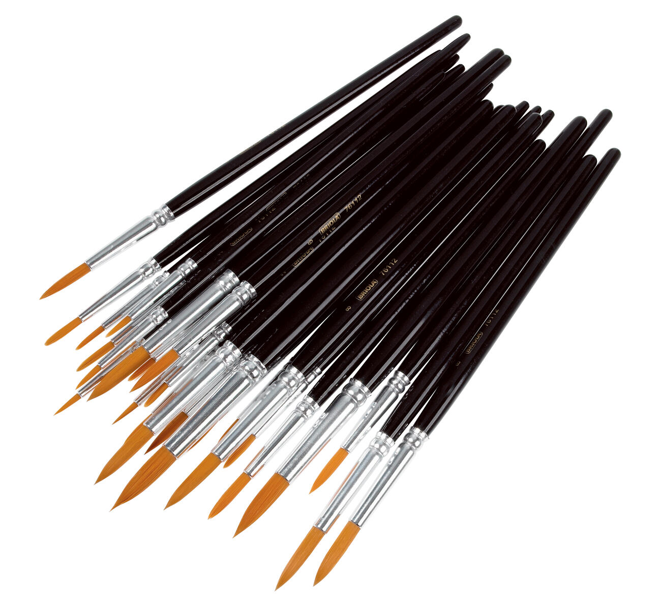 50 st/fp. Innehåller: 25 st flata penslar, 10 st nr 6, 10 st nr 10 och 5 st nr 14. 25 st runda penslar, 8 st nr 2, 5 st nr 4, 6, 8 och 2 st nr 10. PVC-fri.