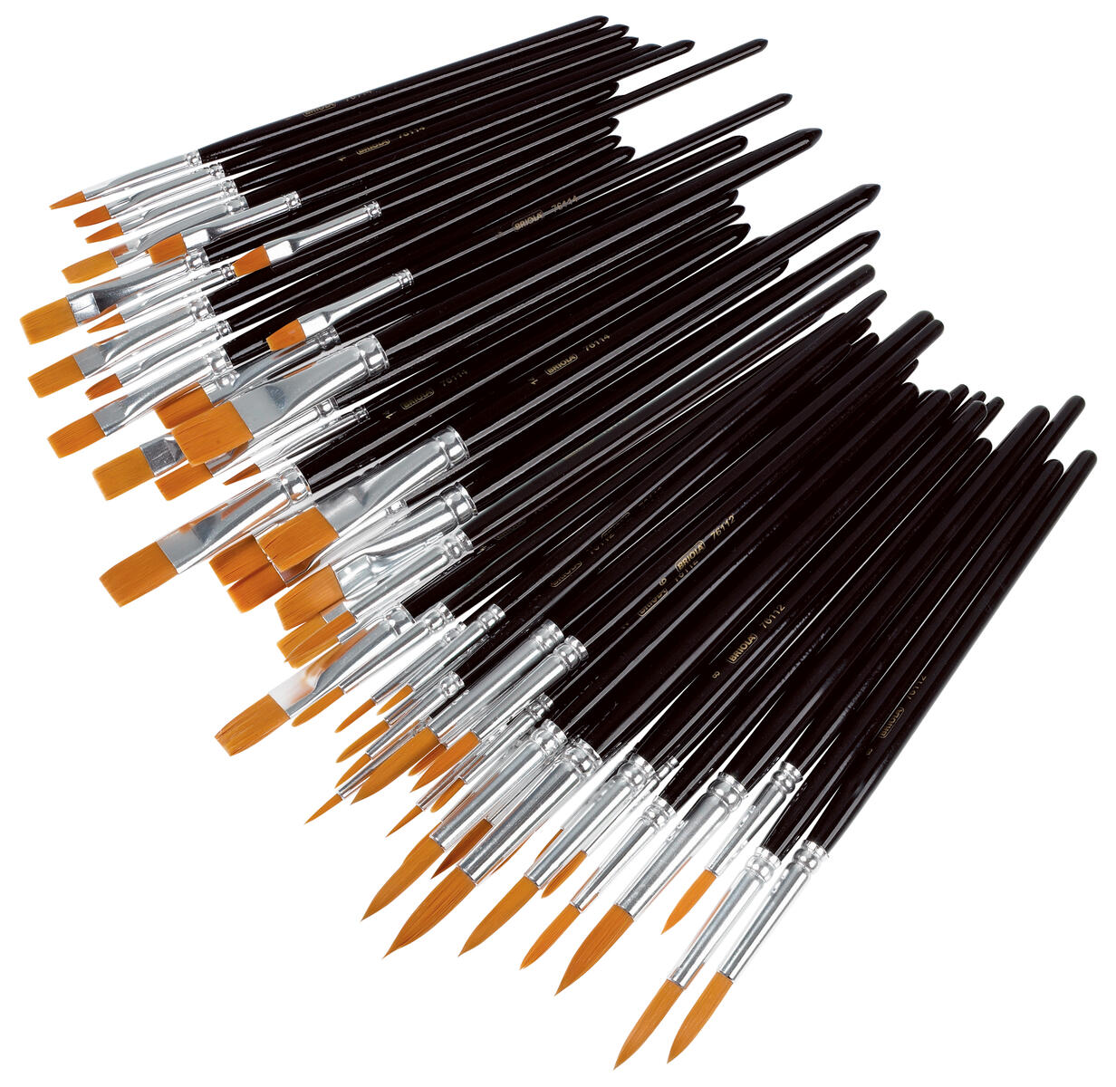 50 st/fp. Blandade modeller, flata och runda. 15 st penslar av ponnyhår stl 4,6 och 8. 10 st runda borstpenslar stl 6 och 14. 15 st flata borstpenslar av stl 8,12 och 16. 10 st flata nylonpenslar av stl 4 och 10. Lackerat träskaft. PVC-fri.