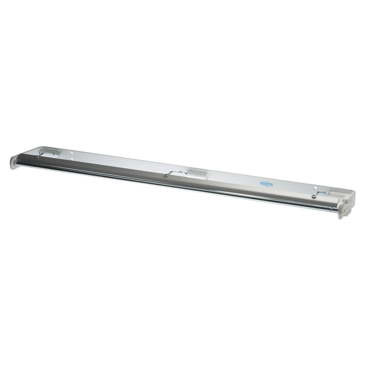 AV-list med upphängningsspår och pappershållarfunktion (6 clips ingår). Levereras med ändstopp och vit dekorlist. Mått: 300x2,7x5,6 cm. Skruvas direkt i vägg.