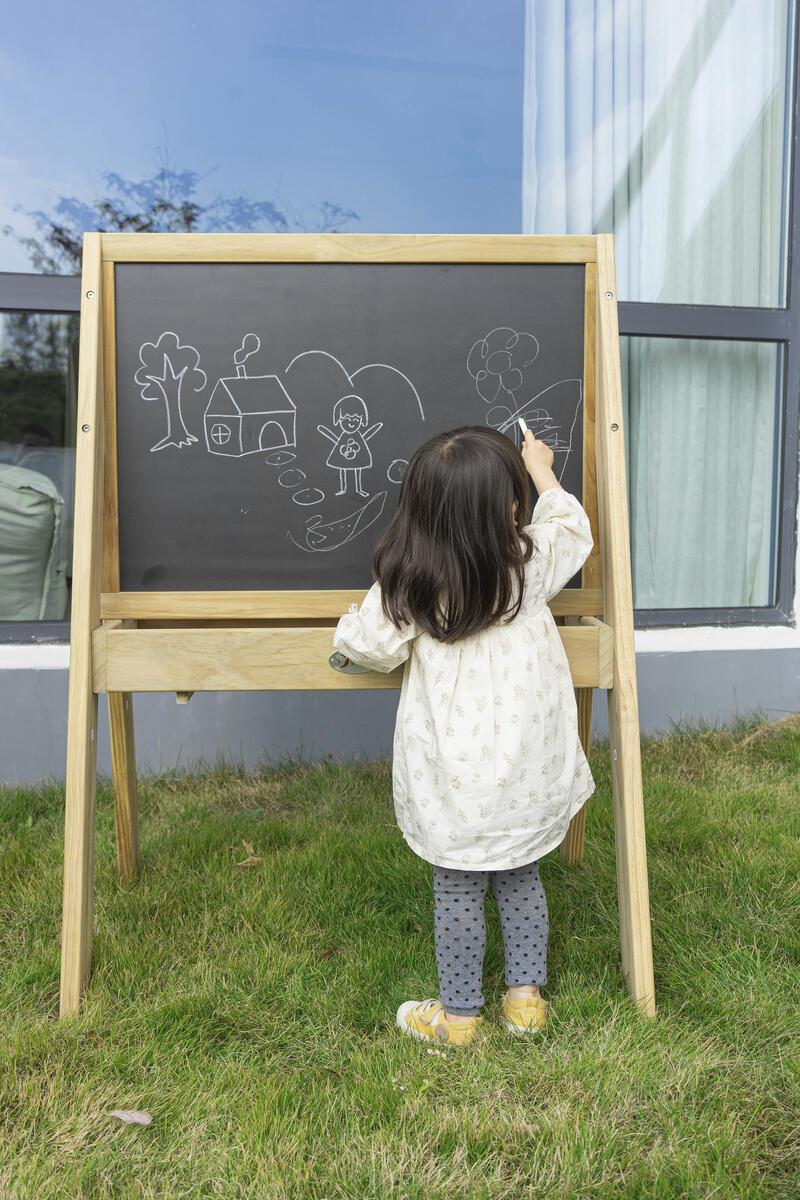 Stadigt tvåsidigt staffli för utomhusbruk. Panel med griffeltavla. Förvaringshylla med plats för pennor, kritor m.m. Mått: B85,5xH120xD67 cm. Arbetsyta 77x55 cm. Levereras omonterat. Monteringsanvisning medföljer. Tillverkat av träskyddsbehandlad furu. FSC-märkt. PVC-fri.