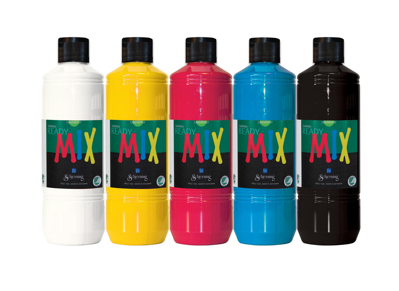 5x500 ml/fp. Färgläraset av vår Svanenmärkta Readymix. Innehåller vitt, svart, primärröd/magenta, primärblå/cyan och primärgul. Lämpar sig utmärkt för grundläggande färgläraövning som att blanda komplementfärger, undersöka kontraster och ljusheter. Komplettera med vår praktiska pump 41007, som du själv klipper av i rätt längd för flaskan. Pumpen bidrar till att färgen lever längre och onödigt svinn undviks. Svanen, licensnummer 50570007. A-märkt. PVC-fri. Från 3 år.