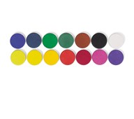 72 st/fp, ø 44 mm. Tjocklek 14 mm. Vattenlöslig och blandbar täckfärg med god täckförmåga. Kan användas både vid täckande och laserande målning. Ett klassrumsset som innehåller 6 st av citrongult, klargult, rött, mörkrött, cerise, klarblått, mörkblått, klargrönt, mörkgrönt, brunt, svart och vitt. PVC-fri.
