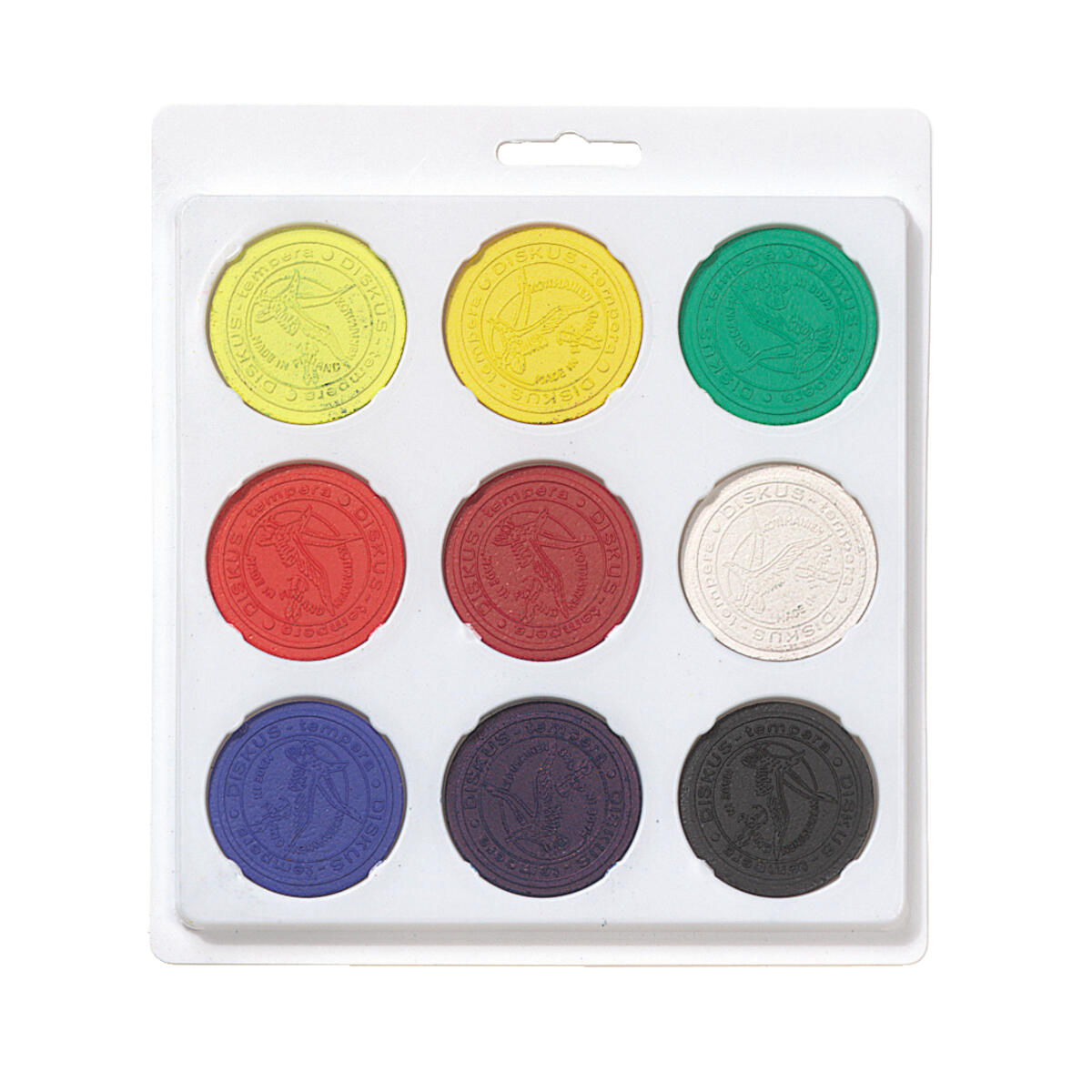 144 st/fp. ø 55-57 mm. Tjocklek 16 mm. Vattenlöslig och blandbar täckfärg med god täckförmåga. Kan användas både vid täckande och laserande målning. Ett klassrumsset som innehåller 12 st av citrongult, klargult, rött, mörkrött, klarblått, mörkblått, klargrönt, mörkgrönt, brunt, svart och vitt samt 6 st av cerise och violett. PVC-fri.