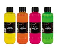 8x500 ml. Textilfärg för målning och tryck. Passar bäst till ljusa, cellulosabaserade tyger som bomull, lin viscos m.m. Mörka textiler grundas med täckvit textilfärg 119390. Fixeras med strykjärn på 50-60 °C i fem minuter efter torkning. Kan tvättas i upp till 40 °C. Färgen kan ge upphov till fläckar även utan fixering, skydda därför alltid kläder och ömtåliga ytor vid användande. Innehåller täckvit, gul, röd, rosa, lila, ljusgrön, grön och svart. PVC-fri.