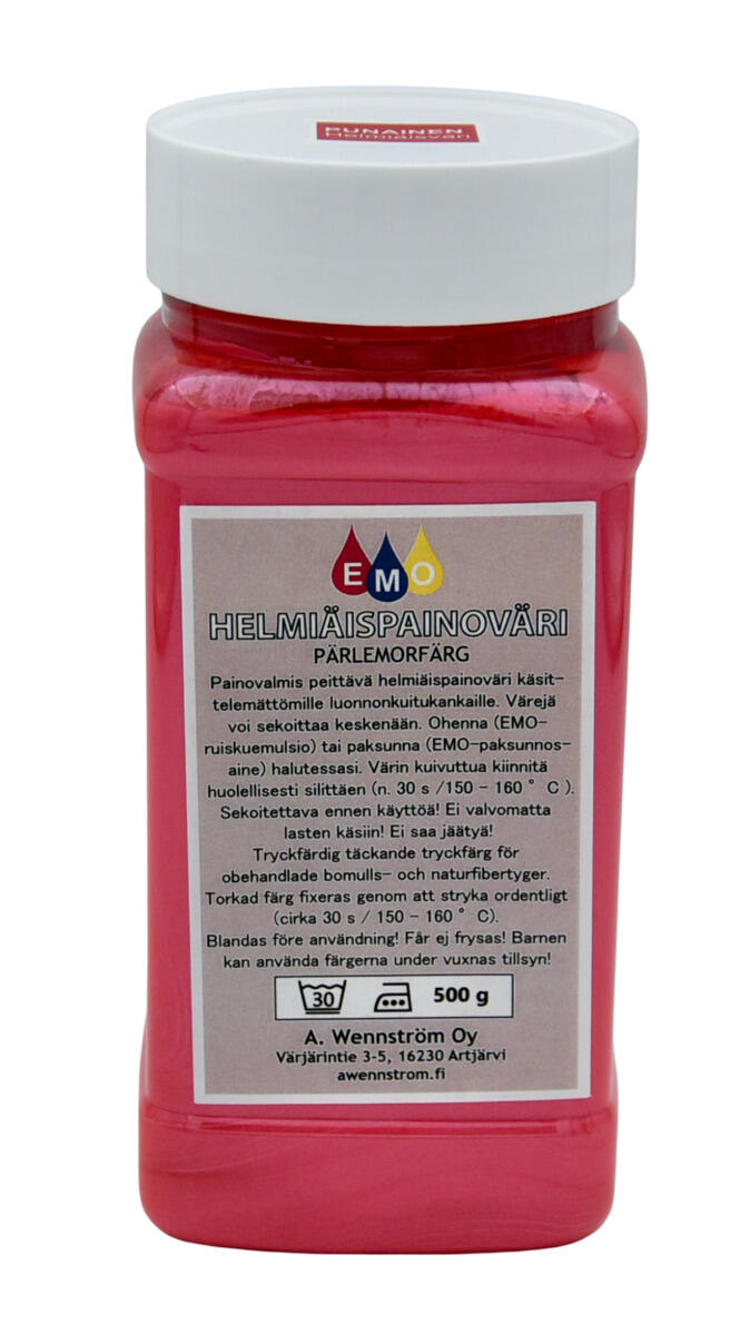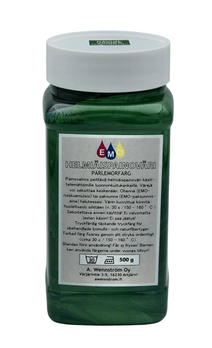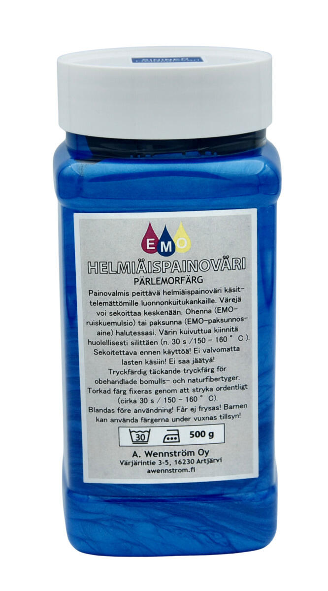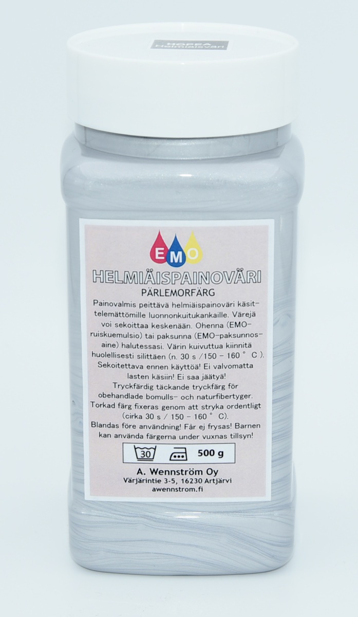 3 kg. EMO sprayemulsion som förtunning för EMO tryckemulsion, färdiga tryckfärger och mattvitt. Kan även användas för målning, sprinkling och solteknik. Tryckfärdig vattenlöslig sprayemulsion för rena naturfibrer. Färgpigment kan tillsättas vid behov. Fixering med värmebehandling. Pressning med värmepress eller strykjärn: 150 °C i 30 s - 1 min. I ugn: 150 °C i 5-7 min. Tvätt i 40 °C. Alla tryckta textilier ska tvättas ut och in. Tvättmedel utan blekmedel.