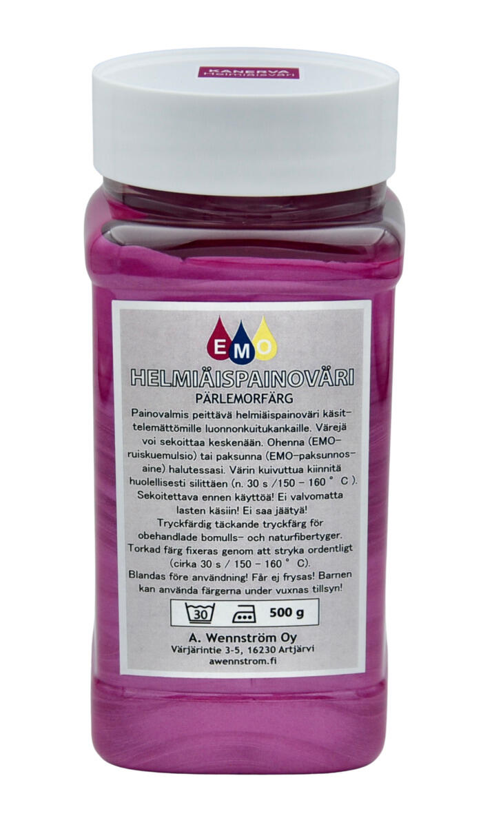 500 g/fp. Vattenbaserad textilfärg av artistkvalitet. Pärlemor-/metalliceffekt. Kan användas på både papper och tyg. Tränger in i textilfibern för att ge ett mjukt tryck. Fixeras med strykjärn när färgen har torkat: 150-160 °C / 30 sek.