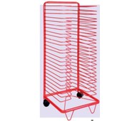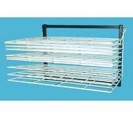 Golvstående torkställning med 20 hyllor, lämplig för A3-papper. Lyftbara hyllor förenklar hantering av material som ska torkas. Storlek enskild hylla: 50x39 cm. Mått: L75xH36xD50 cm. Av stål.