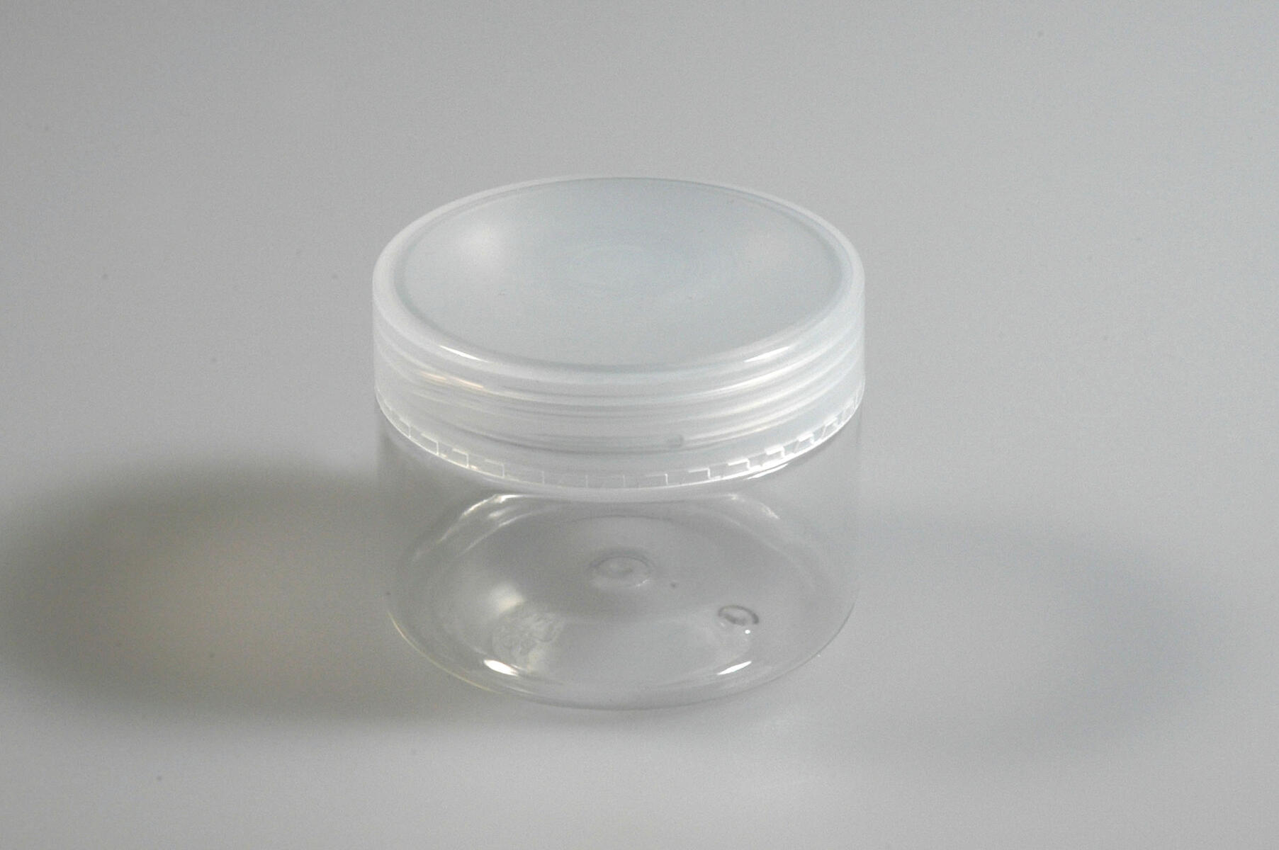 10 st/fp.Vattentät burk med lock. ø = 68 mm, Höjd 70 mm. 180 ml. Av PET och PE.