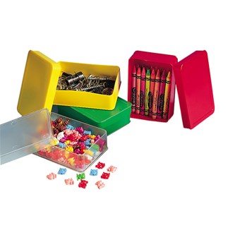 Större plastlåda i 3 nivåer. Har lock med handtag och mindre handtag i sidorna. För sortering och förvaring av t.ex. rörpärlor. Varje nivå innehåller 8 fack, totalt 24 fack. En hel förvaringslåda rymmer ca 12 000 midirörpärlor. Mått: B19xL24xH15,5 cm. Av PP. PVC-fri.