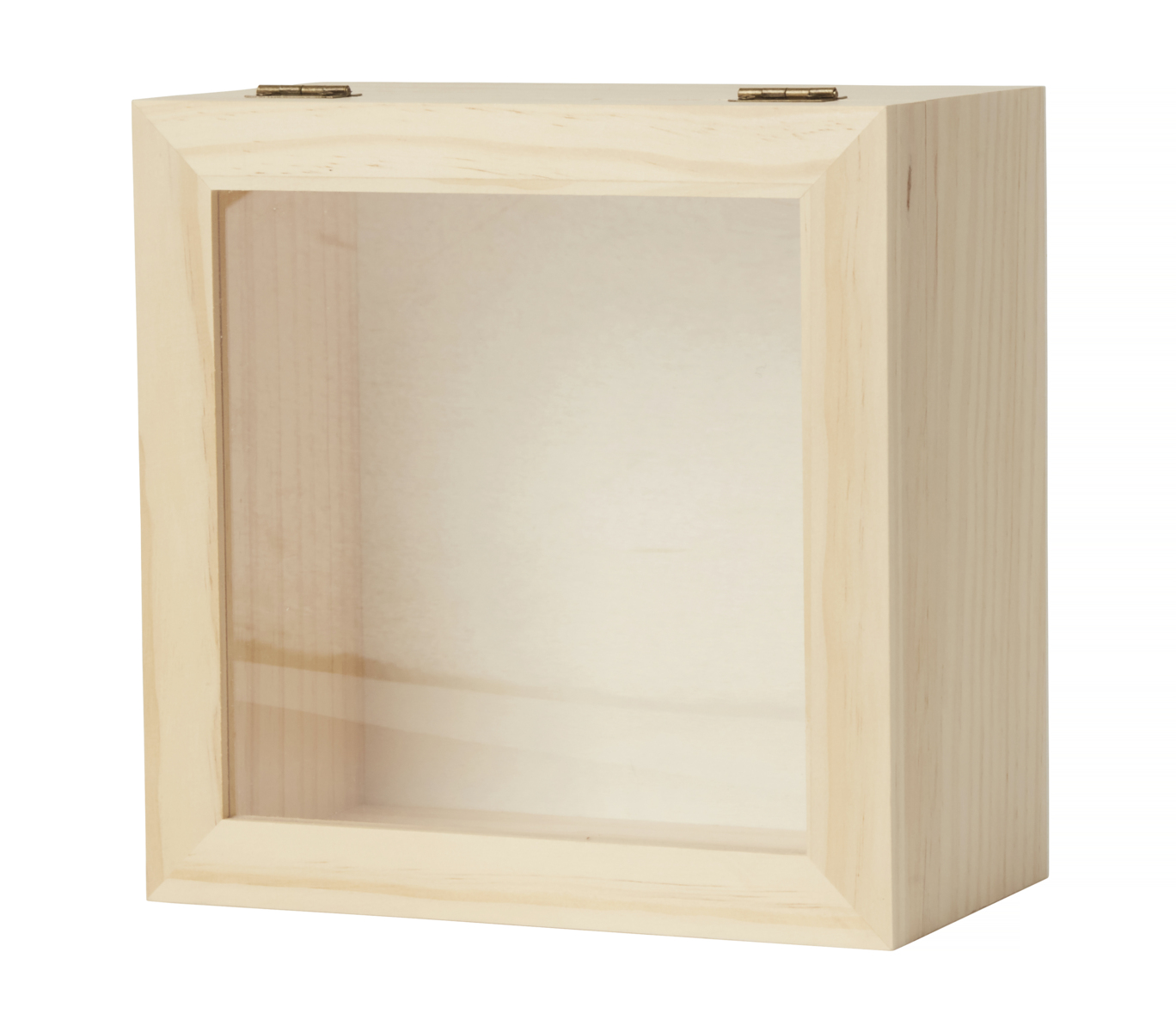 Skapa ett tittskåp eller använd för synlig förvaring. Av obehandlat trä med dörr/lock i plast. Mått: 20x20x11 cm. Av FSC-märkt furu, botten av plywood och lock av polystyren.