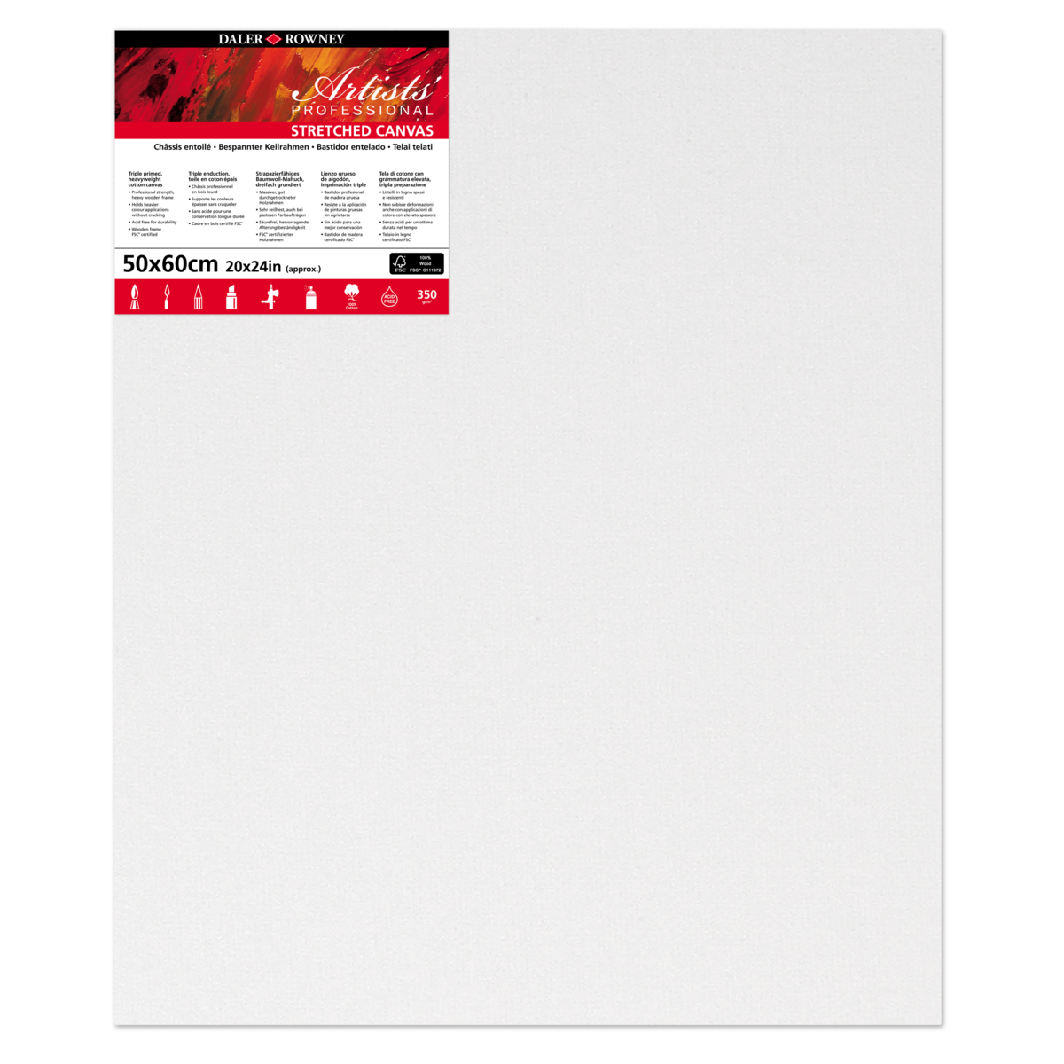 1 st. Uppspänd målarduk i hög kvalitet. 100 % bomull, 350 g. Vikta hörn, på träram. Lämplig för både olje- och akrylfärg. Mediumgräng. Bestruken 3 gånger med Daler-Rowney gesso. Syrafri. Djup 19 mm.