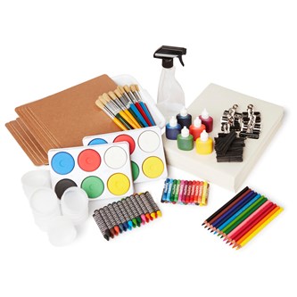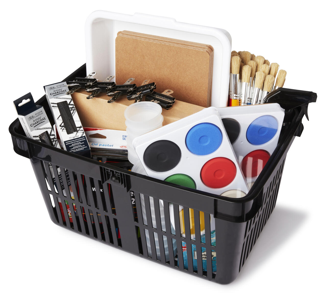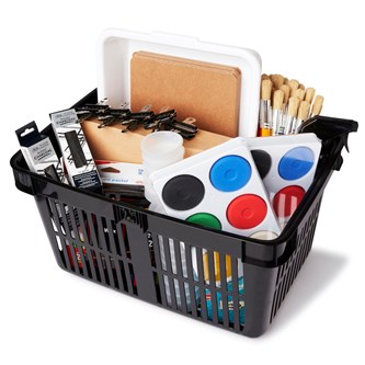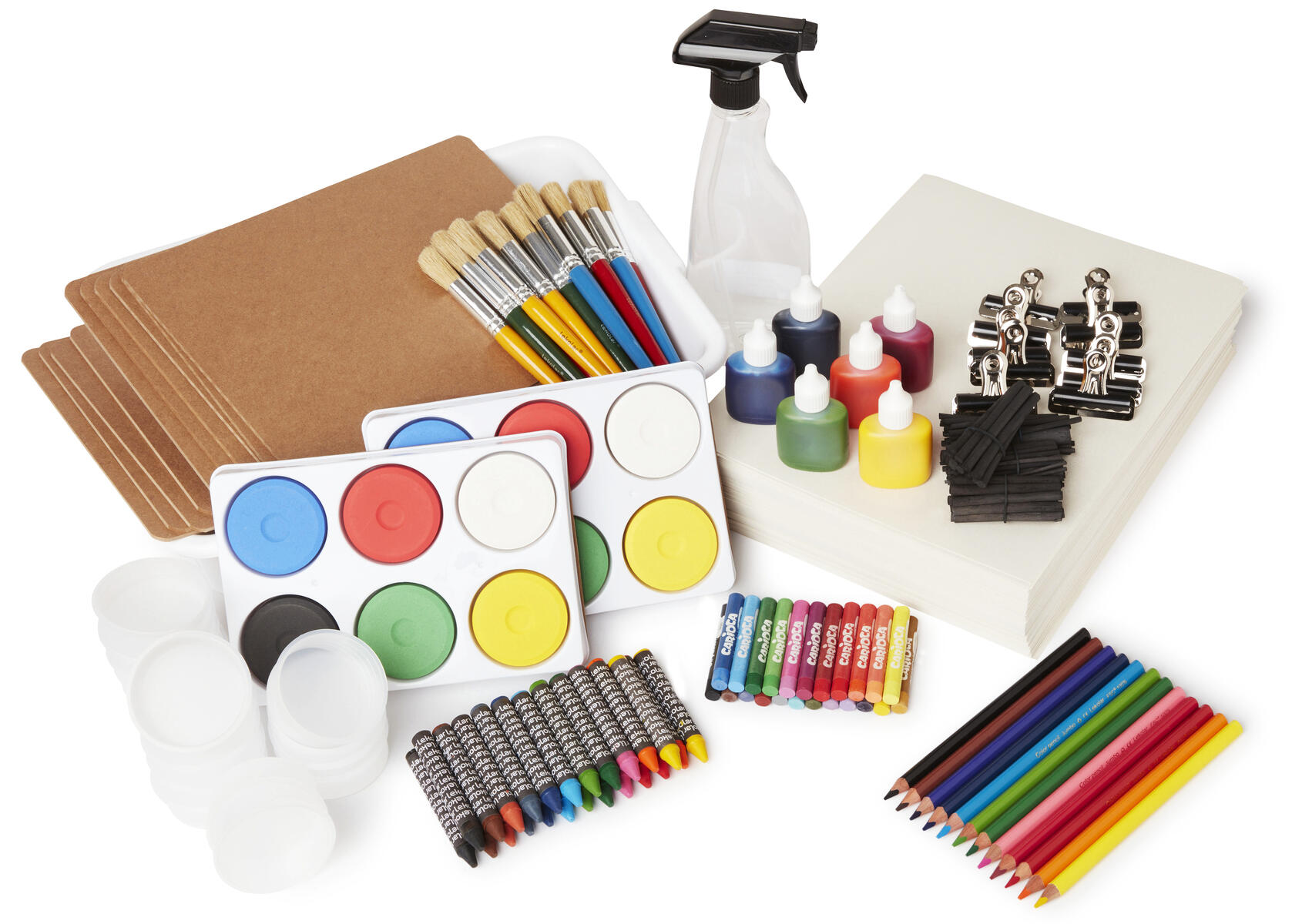 27 delar. Ett paket som hjälper till att flytta ut verksamheten. Framtaget tillsammans med en pedagog. Innehåller: 40293 Ritskiva 10 st, 23304 Pappers Klämmor 12 st, 47157 Växtpapper 250 ark, 110231 oljepastellkritor 24 st, 42491 Ritkol 24 st, 122379 Sprayflaska, 41205 Färgblock 57 mm i palett 2 st, 46863 Färgkoppar 16 st, 46124 Syntetpenslar 25 st, 122021 Trekantiga färgpennor 12 st, 137548 Vaxkritor 24 st, 124860 Färgat ritpapper 5 färger x 20 ark, 78258 Förvaringskorg. Förflytta korgen enkelt med hjälp av artnr 124580, Vagn till förvaringskorg. PVC-fri.