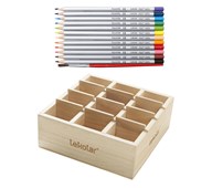 12 st/fp. Hexagonala vattenlösliga färgpennor av hög kvalitet. Passar både för torr färgläggning och akvarell. 12 olika färger. Hellimmat färgstift 3,3 mm i diameter, med extra mycket färgpigment. Längd 180 mm. Tillverkade av PEFC-certifierat cederträ. Levereras i metalletui tillsammans med en pensel av syntetborst.
