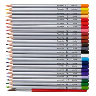 24 st/fp. Färgpennor av hög kvalitet och med god täckförmåga. Hellimmat färgstift. Ingår: gul, ljusgul, orange, aprikos, rosa, ljusröd, röd, mörkröd, ljusgrön, grön, mörkgrön, ljusblå, blå, mörkblå, marinblå, lila, mörklila, vinröd, brun, mörkbrun, svart, vit, guld och silver. FSC-märkta. PVC-fri.