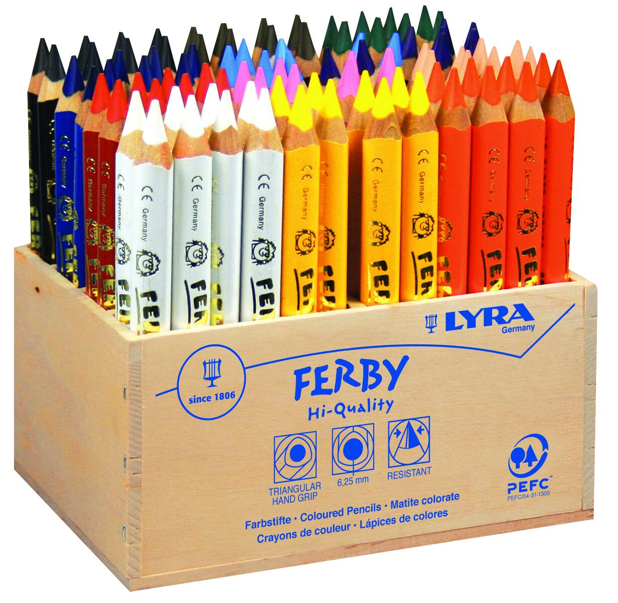 96 st/fp. Lyras mest välkända färgpenna som används av såväl unga amatörer som konstnärer. Trekantsgreppet är ergonomiskt utformat för att inte trötta ut handen. Hellimat färgstift med extra mycket färgpigment bräcks inte om man tappar pennan i golvet. PVC-fri.