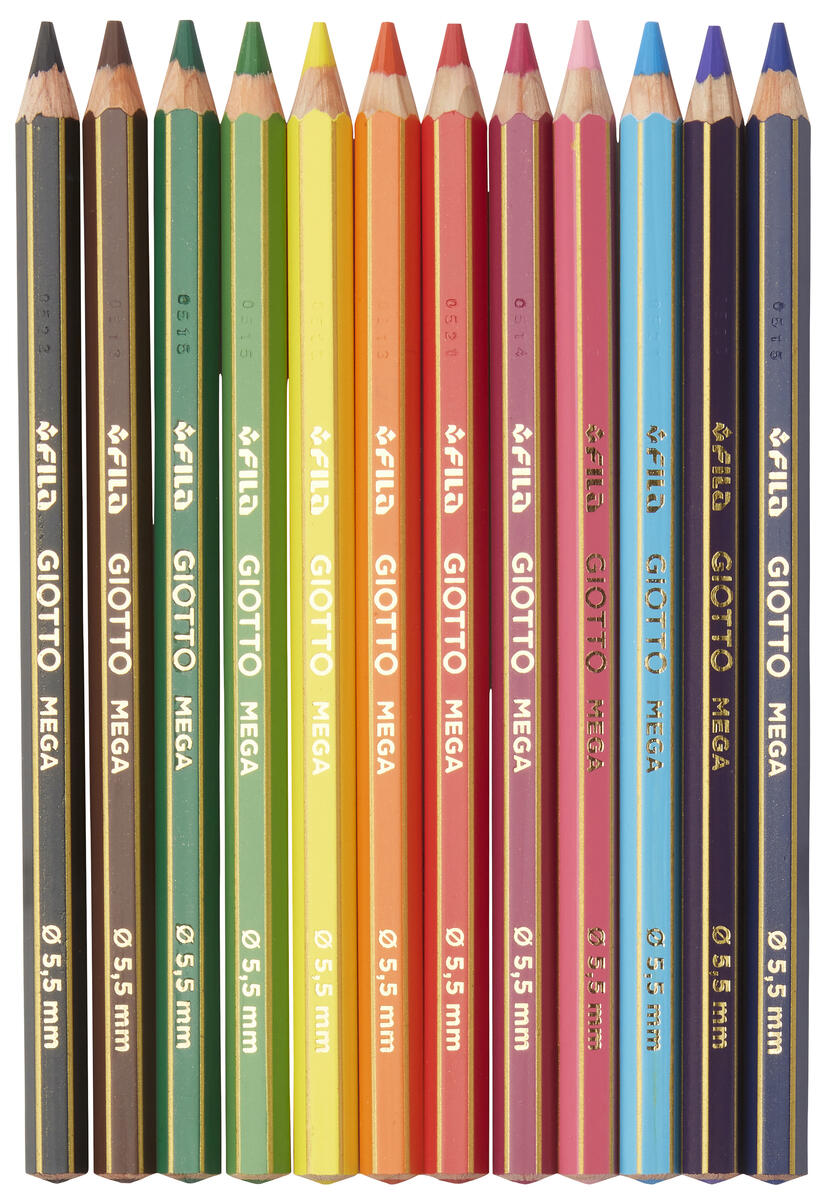12 st/fp. 12 olika färger. Hexagonala färgpennor av hög kvalitet och med god täckförmåga. Penna 10 mm. Färgkärna 6 mm. Hellimmat färgstift. Av trä. PVC-fri.