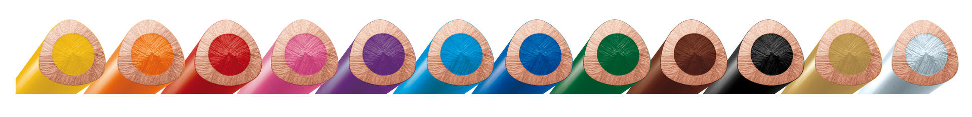 12 färger. Korta och extra tjocka färgpennor. Den trekantiga formen och greppzoner bidrar till ett korrekt penngrepp. För både höger- och vänsterhänta. Vattenlösliga och kan lösas med pensel efteråt eller användas på fuktat underlag. Av PEFC-certifierat cederträ. PVC-fri. Från 3 år.