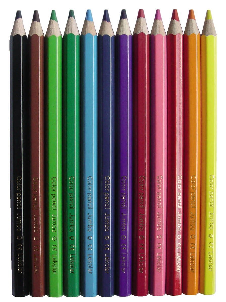 12 st/fp. 12 olika färger. Hexagonala färgpennor av hög kvalitet och med god täckförmåga. Hellimmat, starkt färgstift. Tjocklek penna 7 mm. Tjocklek spets 3 mm. Av trä. PVC-fri.