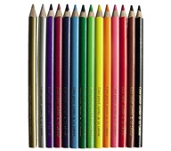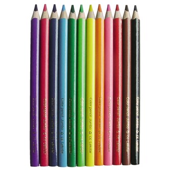 12 st/fp. Trekantiga färgpennor av hög kvalitet och med god täckförmåga. Hellimmat färgstift. Färger som ingår är ljusgrön, grön, ljusblå, blå, gul, rosa, röd, orange, lila, mörkröd, brun och svart. Vässas i pennvässare som klarar upp till ø 12 mm. FSC-märkta. PVC-fri.