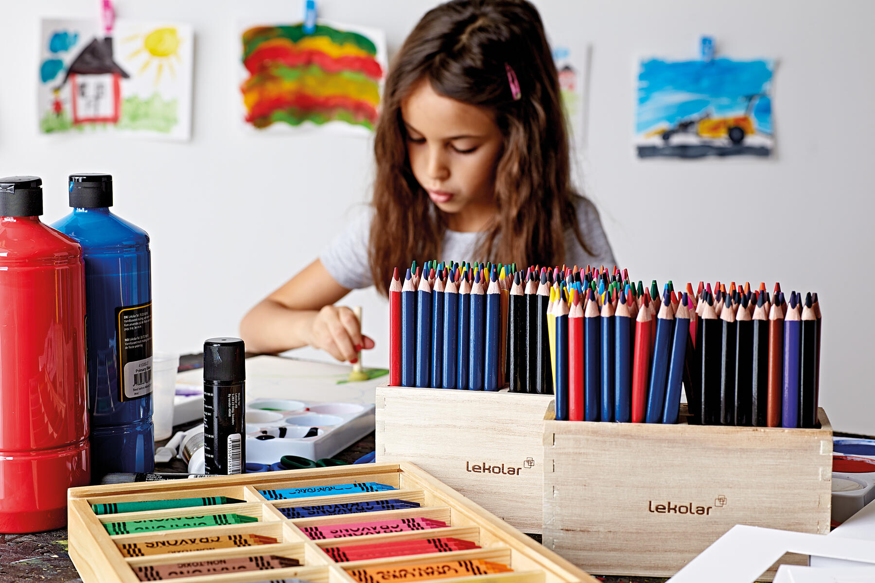 • Lekolar hexagonala färgpennor i trälåda 180-pack