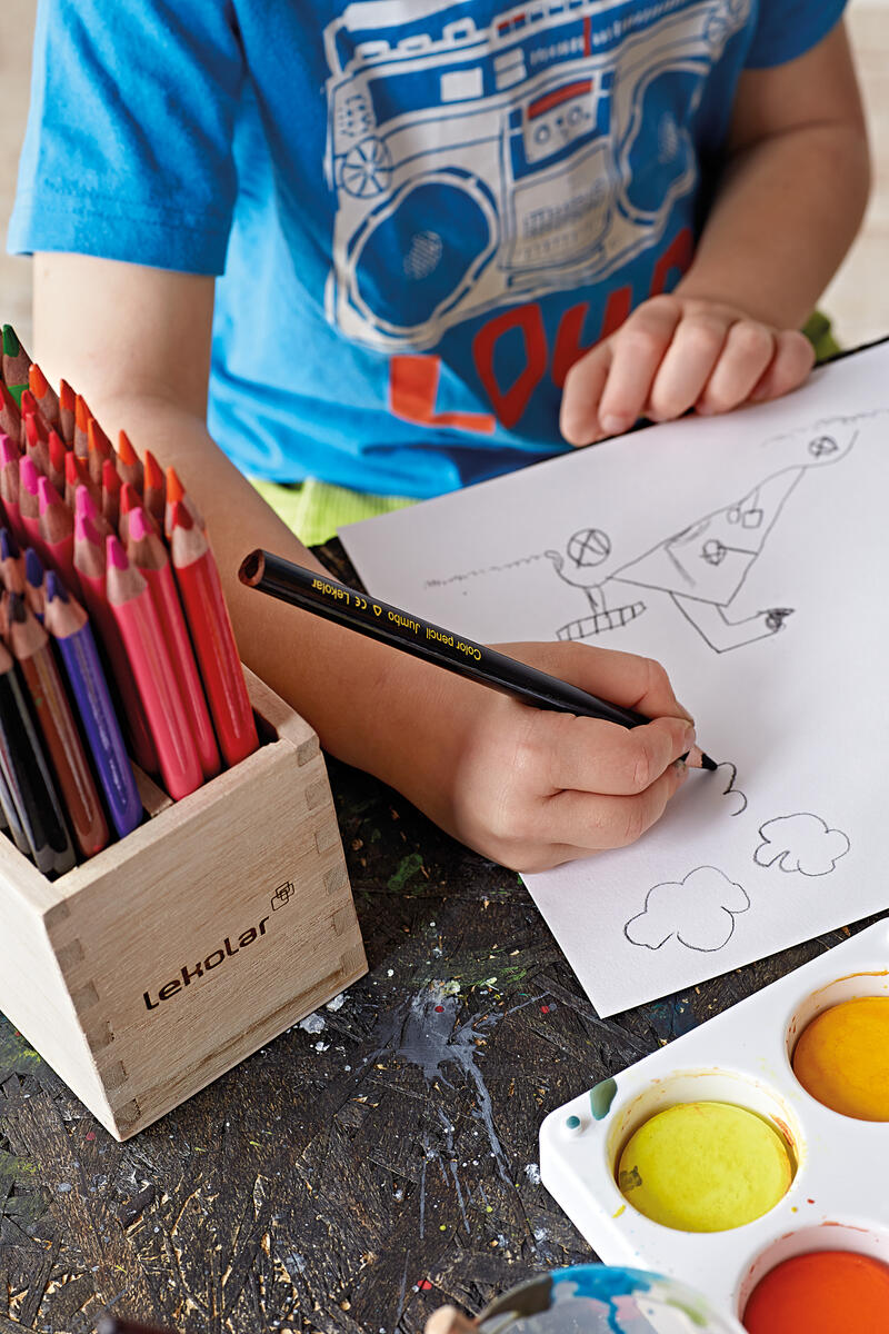 • Titel: Lekolar trekantiga färgpennor jumbo i träställ 96-pack