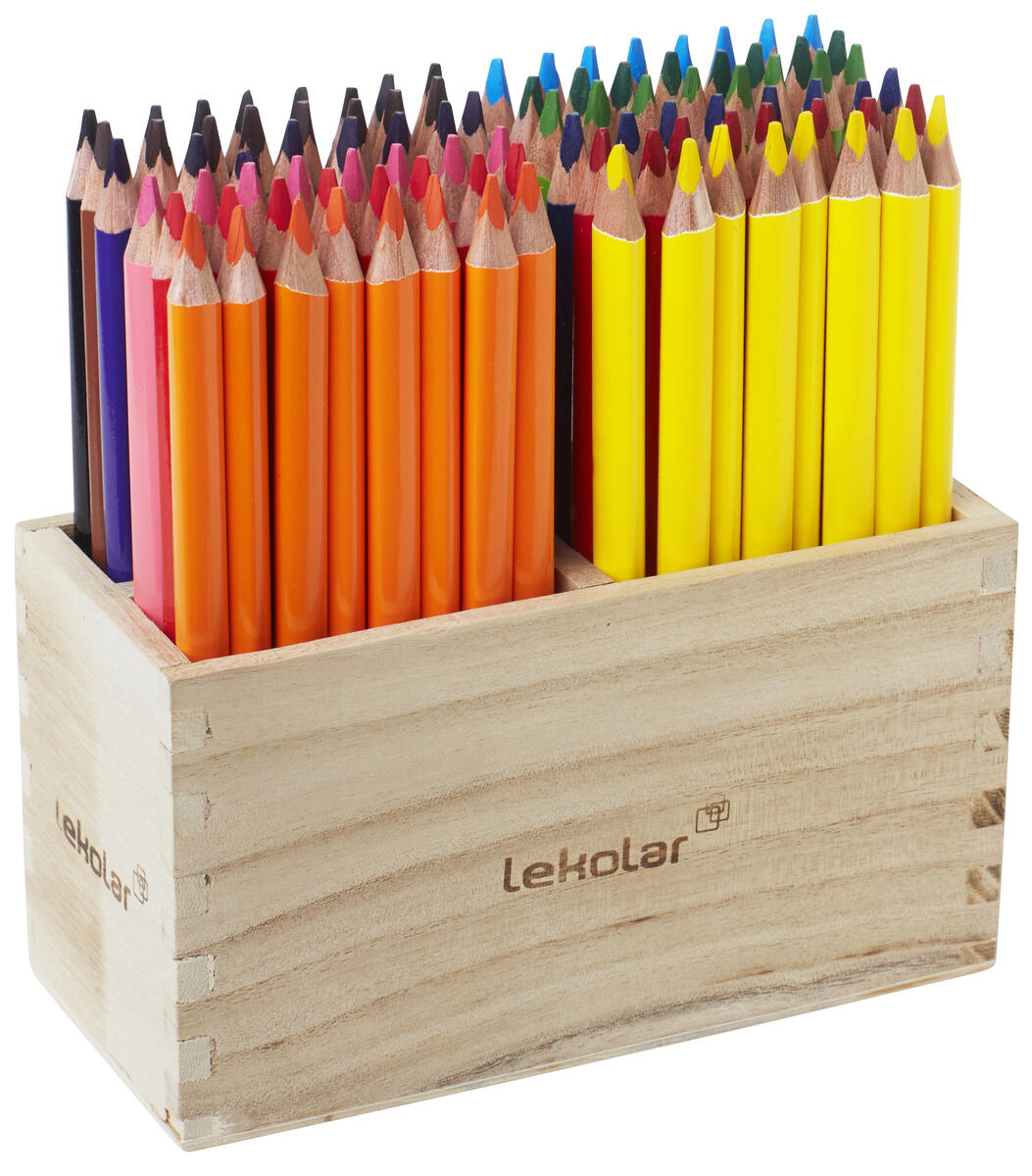 • Lekolar hexagonala färgpennor jumbo i trälåda 144-pack