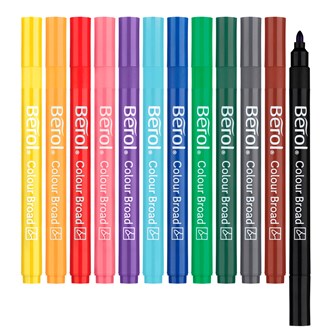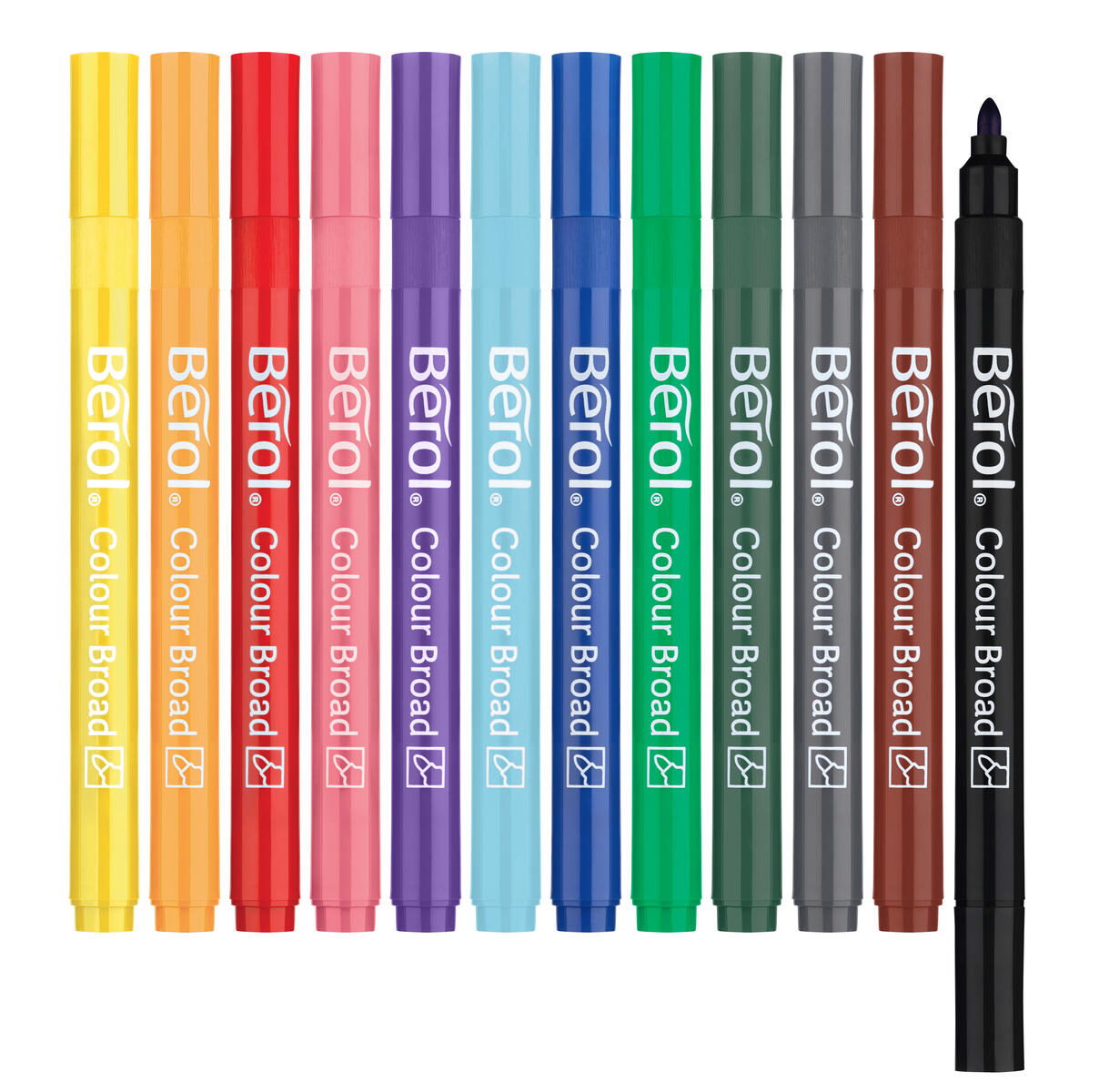 144 st/fp. Fiberpennor i 12 olika färger i god kvalitet. Broad har en bred spets som passar för bl.a färgläggning av större ytor. 3 år. Levereras i en trälåda. PVC-fri.