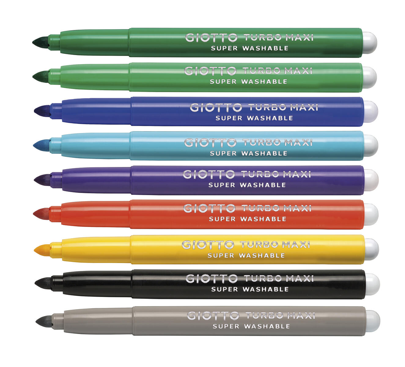 108 st/fp. 12 färger. Extra tjocka fiberpennor av hög kvalitet i intensiva färger med en extra tålig och åtsittande spets. Spetsen går inte att trycka in i pennan. Ventilerad huv med säkerhetsplugg som gör den kvävningssäker. Linjebredd från 1,3 mm. Spetsbredd 5 mm. Vattenbaserat bläck som går lätt att tvätta av från de flesta textilier i maskintvätt 40 °C. Tvättas av från huden med tvål och vatten. Tjocklek penna: 13 mm. Tjocklek spets: 5 mm. Förpackning gjord utav återvunnen plast. PVC-fri. Från 3 år.