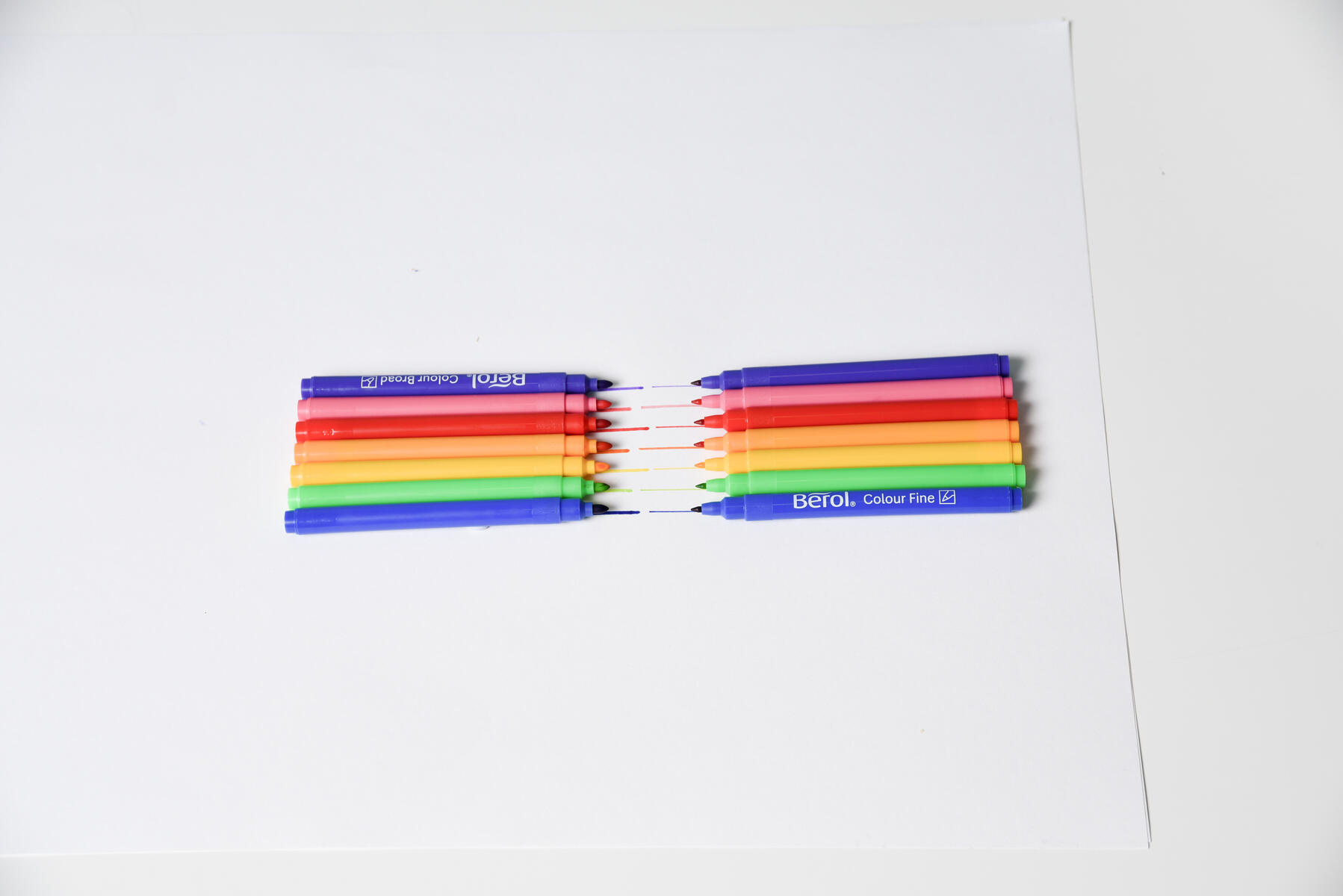42 st/fp. Fiberpennor från Berol av hög kvalitet. Innehåller 6 st svarta. 4 av varje röd, lila, mörkblå, grön, brun. 3 av varje gul, orange, blå, ljusgrön. 2 av varje rosa, grå. Tålig, bred och rundad spets. Flödigt bläck som passar färgläggning av lite större ytor och inte blöder igenom ritpapper. Ventilerad huv och pennkropp av plast, i samma nyanser som bläcket. Pennan kan ligga utan huv i upp till två veckor utan att torka ut. Bläcket kan tvättas bort från kläder, men skydda alltid underlag och textilier vid användande. CE-märkta. PVC-fri. Från 3 år.
